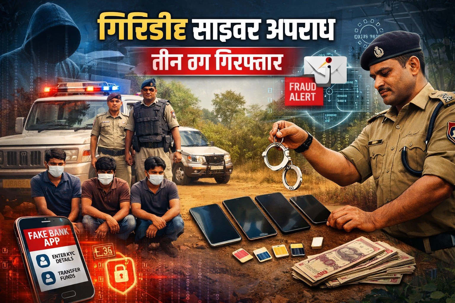 गिरिडीह साइबर अपराध: तीन ठग गिरफ्तार, पुलिस की बड़ी कार्रवाई